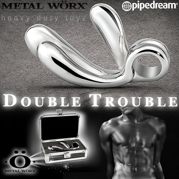 美國PIPEDREAM*METAL WORX-DOUBLE TROUBLE白鋼金屬系列-雙指型指扣G點按摩棒(精緻禮盒裝)